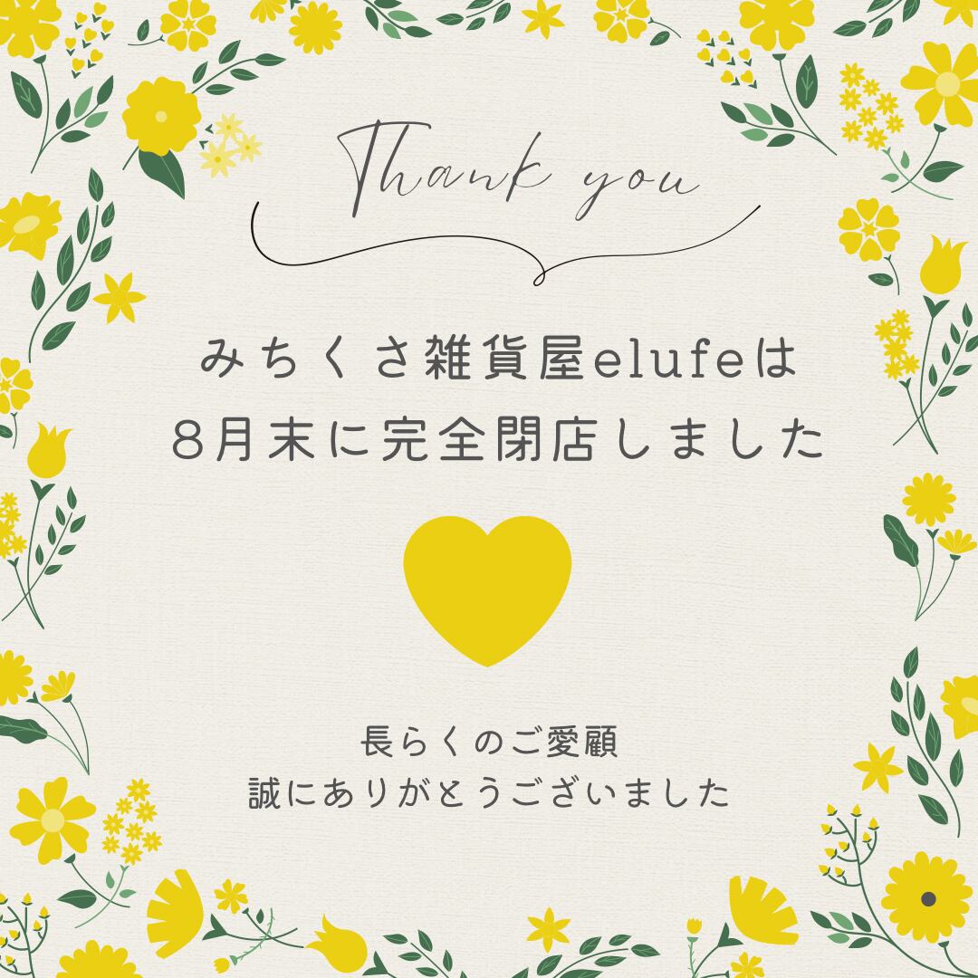 「みちくさ雑貨屋elufe」は2024年8月末をもって、完全閉店いたしました。